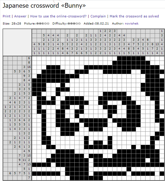 Japanese crossword «Bunny»