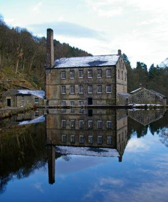 The second picture shows Gibson Mill which was built in 1800 on the river in the valley below Heptonstall The dam was built to give a head of water for the waterwheel. Many of the hand weavers found it more profitable to work there.