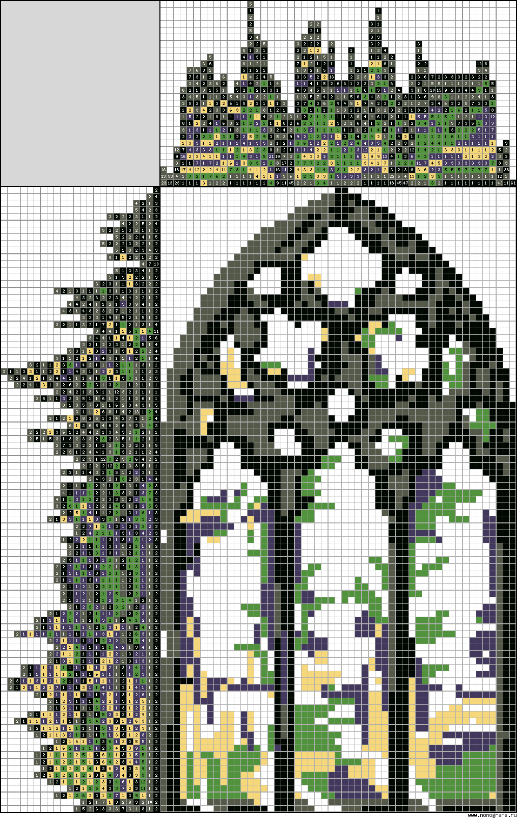 Japanese crossword «Gothic window with a landscape»