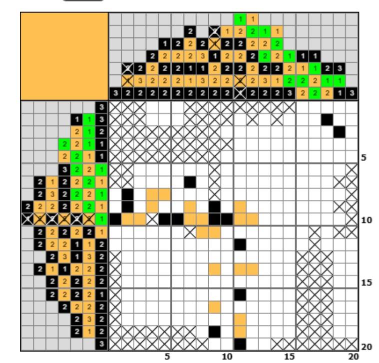 I clicked the color key squares and filled the rows with x's and then filled in the x's that turned red and added color as I went.