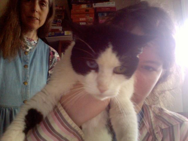 What a sweetheart! We had a black and white one with eyes like this. When you took her picture with a flash, the blue eye glowed red and the green eye glowed green, so the kids nicknamed her "Christmas lights".
